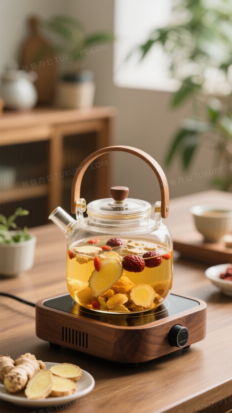 本作品内容为这是一张生姜的商品推广图画面主体是一个玻璃材质的煮茶壶, 格式为 jpg, 大小1 MB, 图片尺寸为936 x 1664, 源文件无水印, 欢迎使用熊猫办公。 如认为平台内容涉嫌侵权,可通过邮件:tousu@tukuppt.com提出书面通知,我们将及时处理。