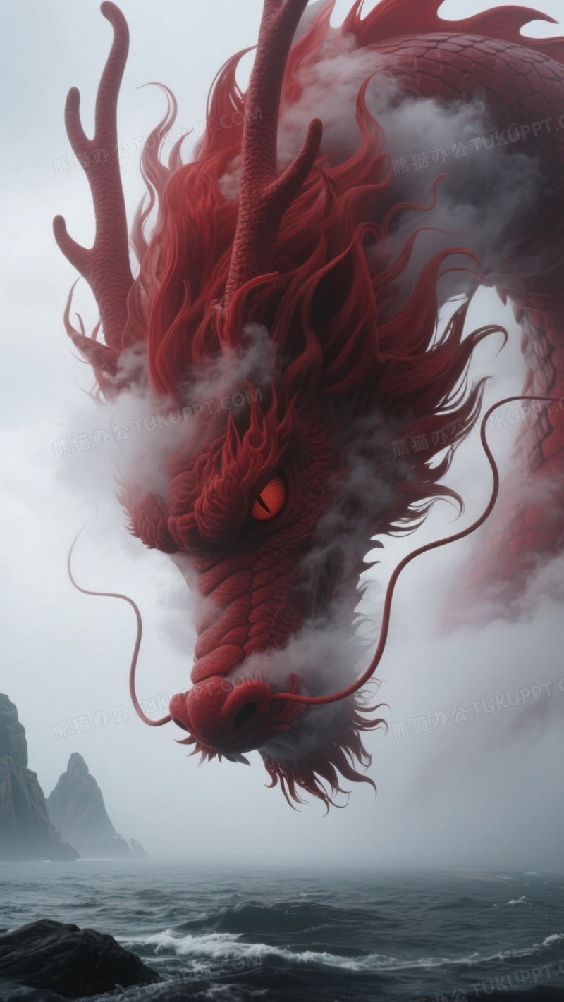 本作品内容为一张由云雾凝聚而成的巨型红色神龙轮廓, 格式为 jpg, 大小1 MB, 图片尺寸为936 x 1664, 源文件无水印, 欢迎使用熊猫办公。 如认为平台内容涉嫌侵权,可通过邮件:tousu@tukuppt.com提出书面通知,我们将及时处理。