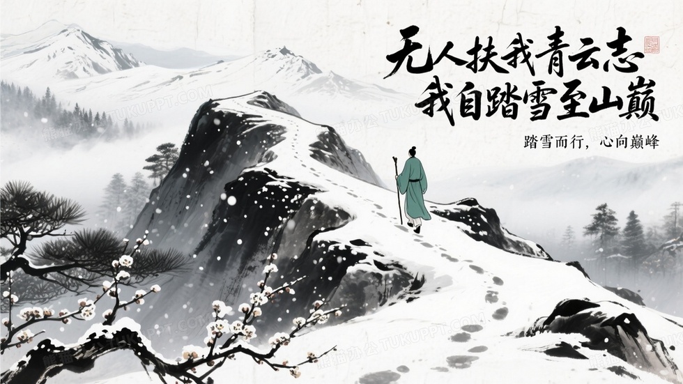 本作品内容为水墨写意风格背景为苍茫雪山与淡墨远林, 格式为 jpg, 大小1 MB, 图片尺寸为1664 x 936, 源文件无水印, 欢迎使用熊猫办公。 如认为平台内容涉嫌侵权,可通过邮件:tousu@tukuppt.com提出书面通知,我们将及时处理。