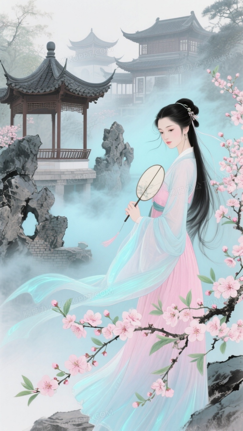 本作品内容为以下是关于美女古风的水墨画创作提示词, 格式为 jpg, 大小1 MB, 图片尺寸为936 x 1664, 源文件无水印, 欢迎使用熊猫办公。 如认为平台内容涉嫌侵权,可通过邮件:tousu@tukuppt.com提出书面通知,我们将及时处理。