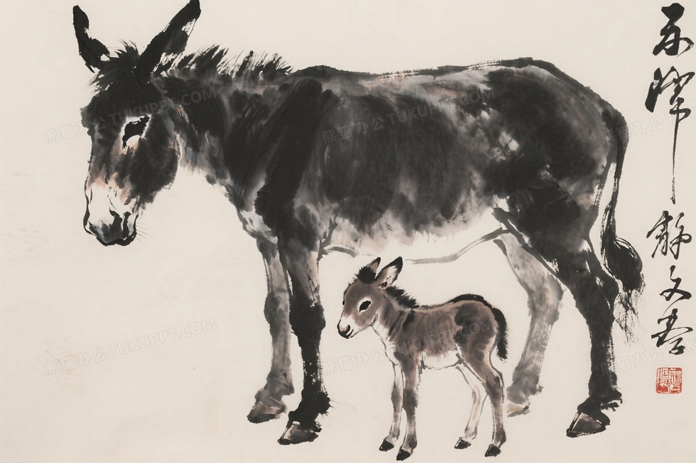 本作品内容为用黄胄的中国画技法画一头母驴和小驴, 格式为 jpg, 大小1 MB, 图片尺寸为1584 x 1056, 源文件无水印, 欢迎使用熊猫办公。 如认为平台内容涉嫌侵权,可通过邮件:tousu@tukuppt.com提出书面通知,我们将及时处理。