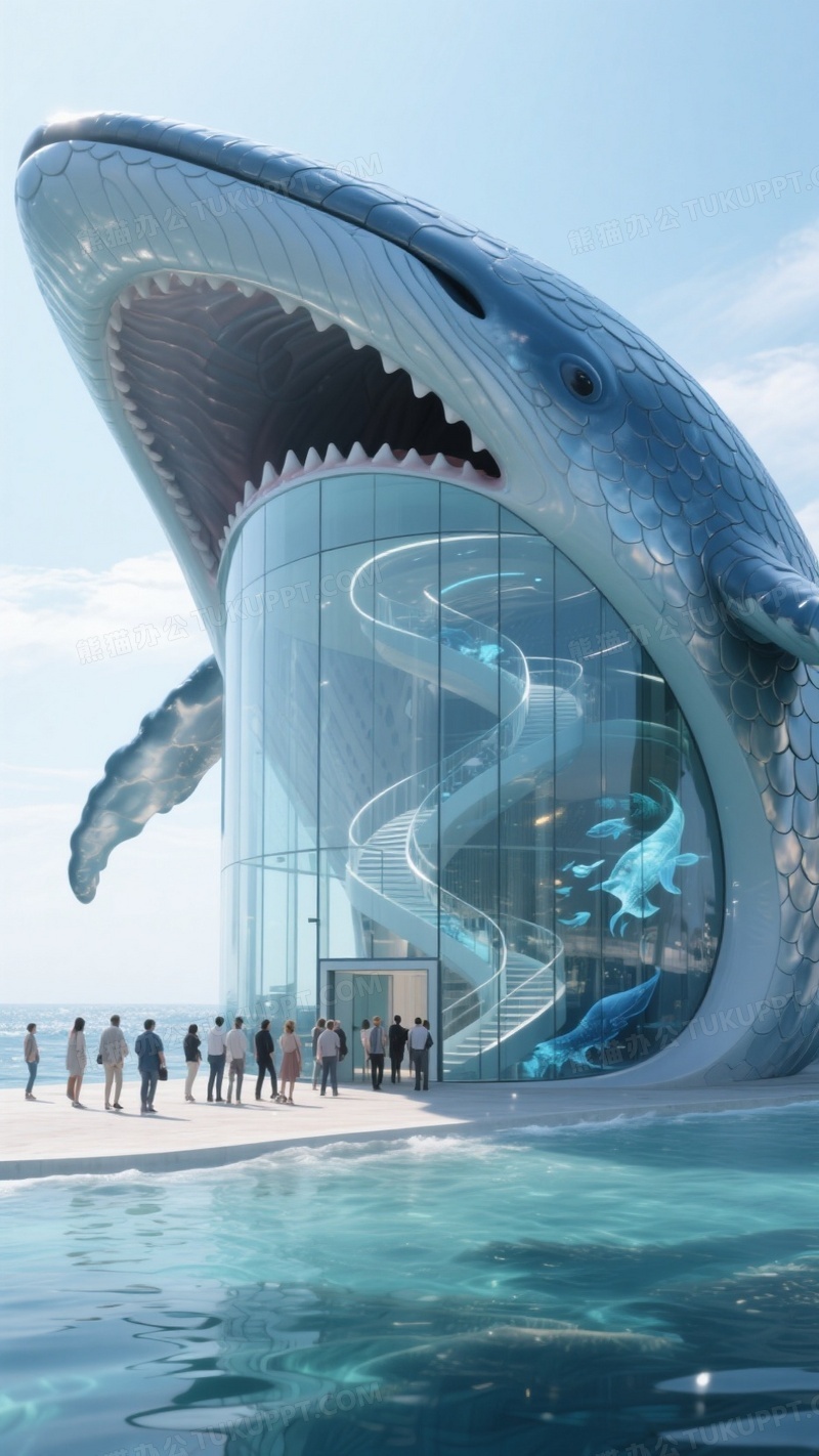 本作品内容为巨型鲸鱼造型的海洋博物馆采用未来主义流线型建筑风格, 格式为 jpg, 大小1 MB, 图片尺寸为936 x 1664, 源文件无水印, 欢迎使用熊猫办公。 如认为平台内容涉嫌侵权,可通过邮件:tousu@tukuppt.com提出书面通知,我们将及时处理。