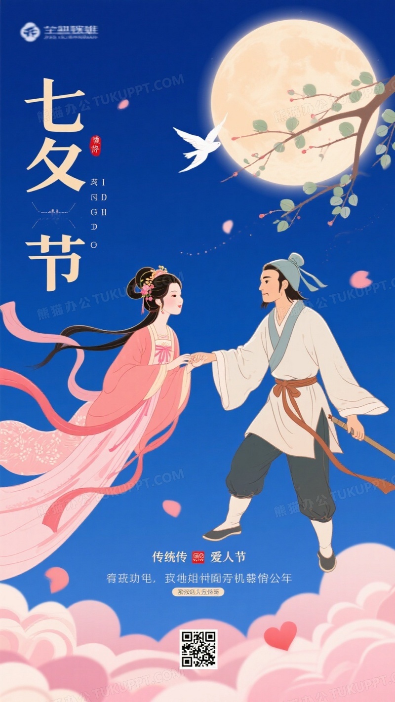 本作品内容为七夕节牛郎织女传统情人节海报, 格式为 jpg, 大小1 MB, 图片尺寸为936 x 1664, 源文件无水印, 欢迎使用熊猫办公。 如认为平台内容涉嫌侵权,可通过邮件:tousu@tukuppt.com提出书面通知,我们将及时处理。