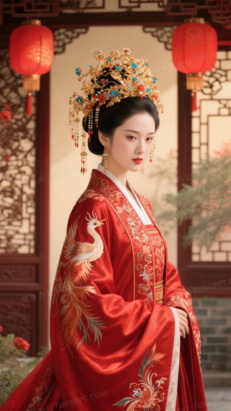 本作品内容为端庄优雅的古典美人身着精致红色凤冠霞帔, 格式为 jpg, 大小1 MB, 图片尺寸为936 x 1664, 源文件无水印, 欢迎使用熊猫办公。 如认为平台内容涉嫌侵权,可通过邮件:tousu@tukuppt.com提出书面通知,我们将及时处理。