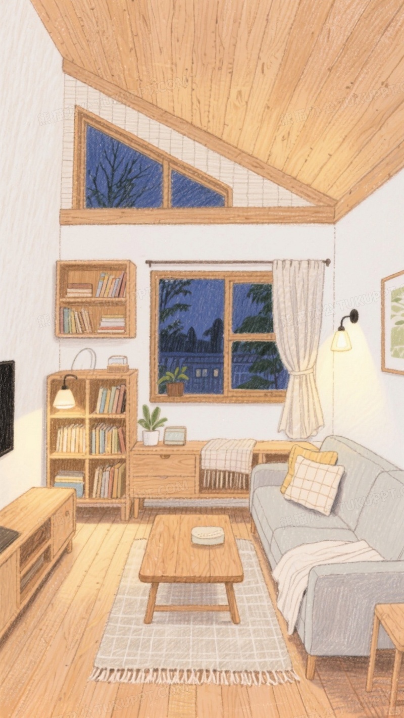 本作品内容为插画风格彩铅线描原木风装修风格的一个58平方的小屋, 格式为 jpg, 大小1 MB, 图片尺寸为936 x 1664, 源文件无水印, 欢迎使用熊猫办公。 如认为平台内容涉嫌侵权,可通过邮件:tousu@tukuppt.com提出书面通知,我们将及时处理。
