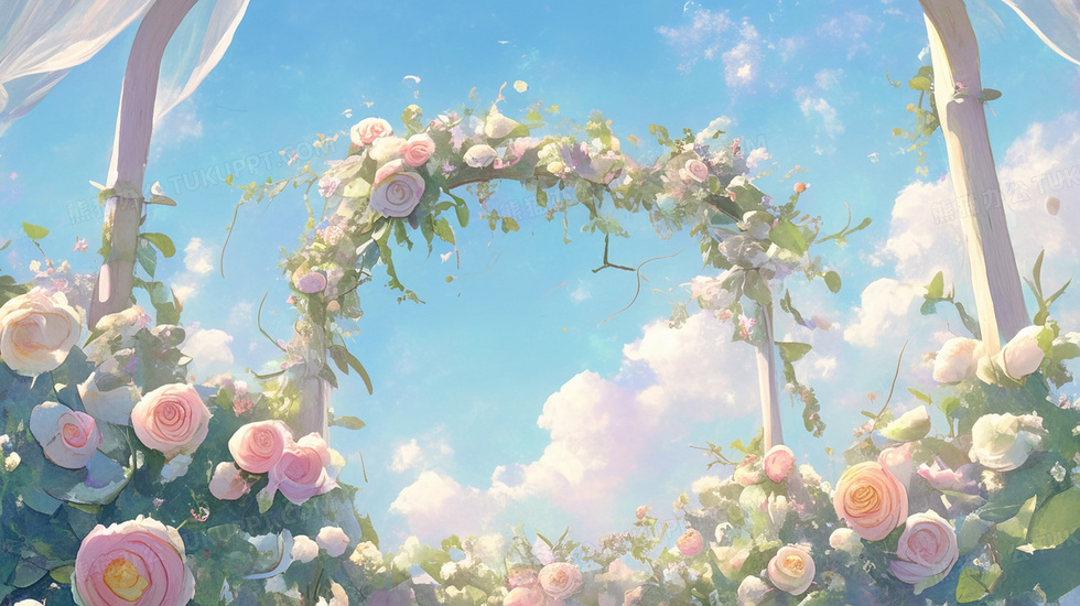 本作品内容为蓝天白云唯美弧形花卉装饰插画, 格式为 jpg, 大小3 MB, 图片尺寸为2912 x 1632, 源文件无水印, 欢迎使用熊猫办公。 如认为平台内容涉嫌侵权,可通过邮件:tousu@tukuppt.com提出书面通知,我们将及时处理。