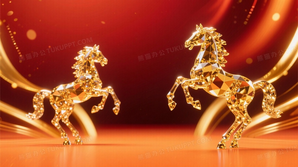 本作品内容为马年主题活动画面两侧靠边各有1匹小小的由水晶组成的金色发光骏马, 格式为 jpg, 大小1 MB, 图片尺寸为1664 x 936, 作品中背景图片无需修改, 源文件无水印,可以直接使用, 欢迎使用熊猫办公。 如认为平台内容涉嫌侵权,可通过邮件:tousu@tukuppt.com提出书面通知,我们将及时处理。