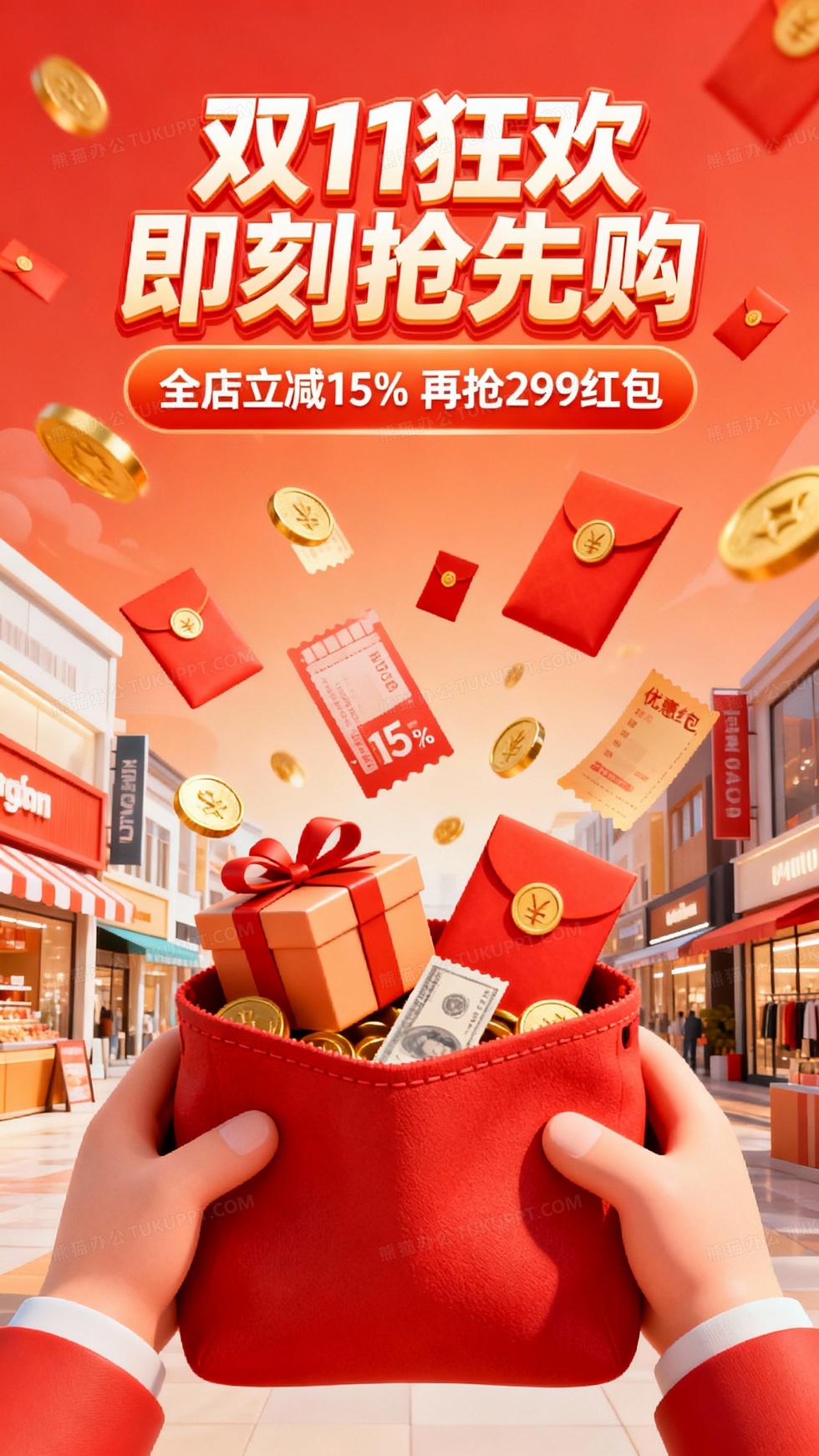 本作品内容为双海报设计3D渲染一双手举着一个红色口袋, 格式为 jpg, 大小1 MB, 图片尺寸为1440 x 2560, 源文件无水印, 欢迎使用熊猫办公。 如认为平台内容涉嫌侵权,可通过邮件:tousu@tukuppt.com提出书面通知,我们将及时处理。