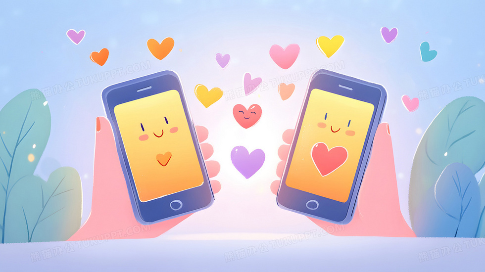 本作品内容为插画风格手机APP线上网上交友, 格式为 jpg, 大小2 MB, 图片尺寸为2912 x 1632, 源文件无水印, 欢迎使用熊猫办公。 如认为平台内容涉嫌侵权,可通过邮件:tousu@tukuppt.com提出书面通知,我们将及时处理。
