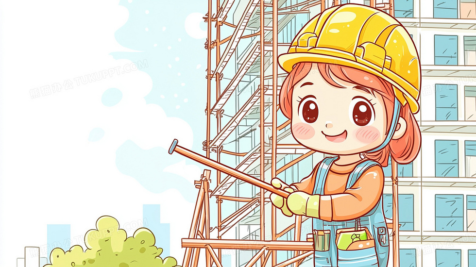 本作品内容为建筑女工人戴着头盔在工地施工劳作卡通插画, 格式为 jpg, 大小2 MB, 图片尺寸为2912 x 1632, 源文件无水印, 欢迎使用熊猫办公。 如认为平台内容涉嫌侵权,可通过邮件:tousu@tukuppt.com提出书面通知,我们将及时处理。