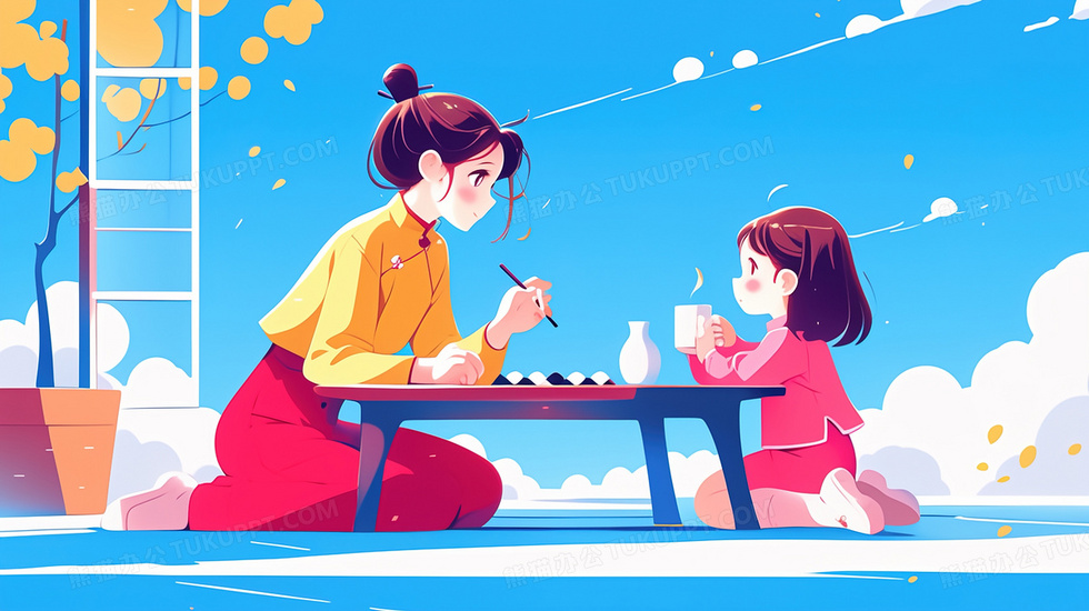 本作品内容为妈妈陪伴小女孩学习写字插画, 格式为 jpg, 大小2 MB, 图片尺寸为2912 x 1632, 源文件无水印, 欢迎使用熊猫办公。 如认为平台内容涉嫌侵权,可通过邮件:tousu@tukuppt.com提出书面通知,我们将及时处理。