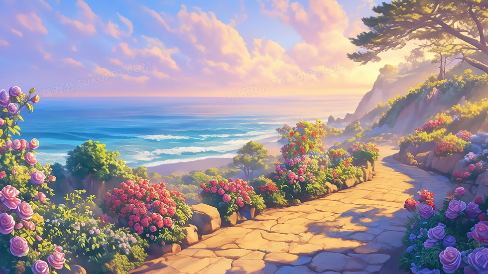 本作品内容为唯美海边玫瑰花花丛蓝天白云大自然风景插画, 格式为 jpg, 大小4 MB, 图片尺寸为2912 x 1632, 源文件无水印, 欢迎使用熊猫办公。 如认为平台内容涉嫌侵权,可通过邮件:tousu@tukuppt.com提出书面通知,我们将及时处理。