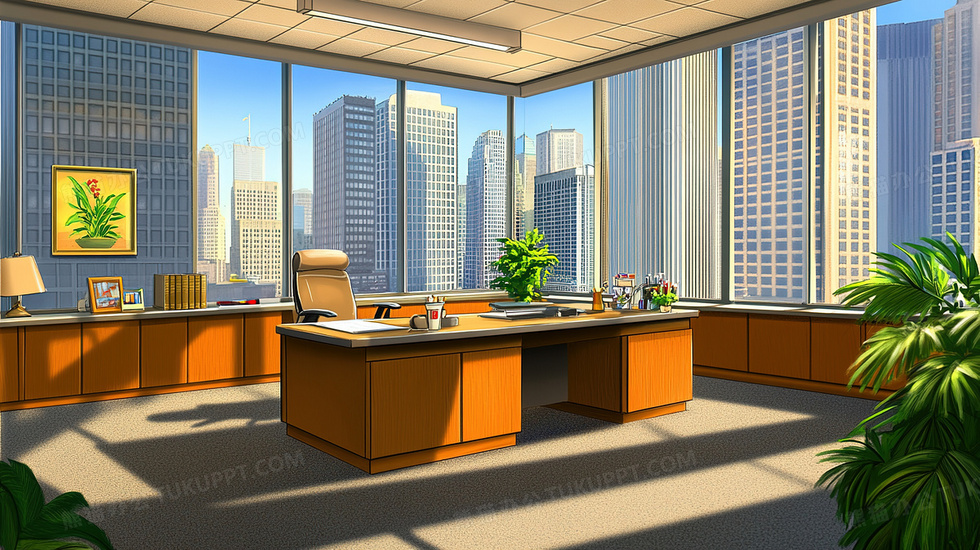 本作品内容为老板办公室场景插画, 格式为 jpg, 大小4 MB, 图片尺寸为2912 x 1632, 源文件无水印, 欢迎使用熊猫办公。 如认为平台内容涉嫌侵权,可通过邮件:tousu@tukuppt.com提出书面通知,我们将及时处理。