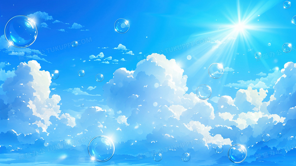 本作品内容为小清新治愈蔚蓝天空云层山水气泡插画, 格式为 jpg, 大小2 MB, 图片尺寸为2912 x 1632, 源文件无水印, 欢迎使用熊猫办公。 如认为平台内容涉嫌侵权,可通过邮件:tousu@tukuppt.com提出书面通知,我们将及时处理。