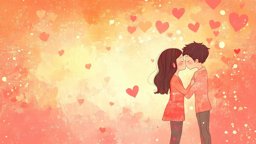 本作品内容为卡通风情侣亲吻情人节背景, 格式为 jpg, 大小4 MB, 图片尺寸为2912 x 1632, 作品中背景图片无需修改, 源文件无水印,可以直接使用, 欢迎使用熊猫办公。 如认为平台内容涉嫌侵权,可通过邮件:tousu@tukuppt.com提出书面通知,我们将及时处理。