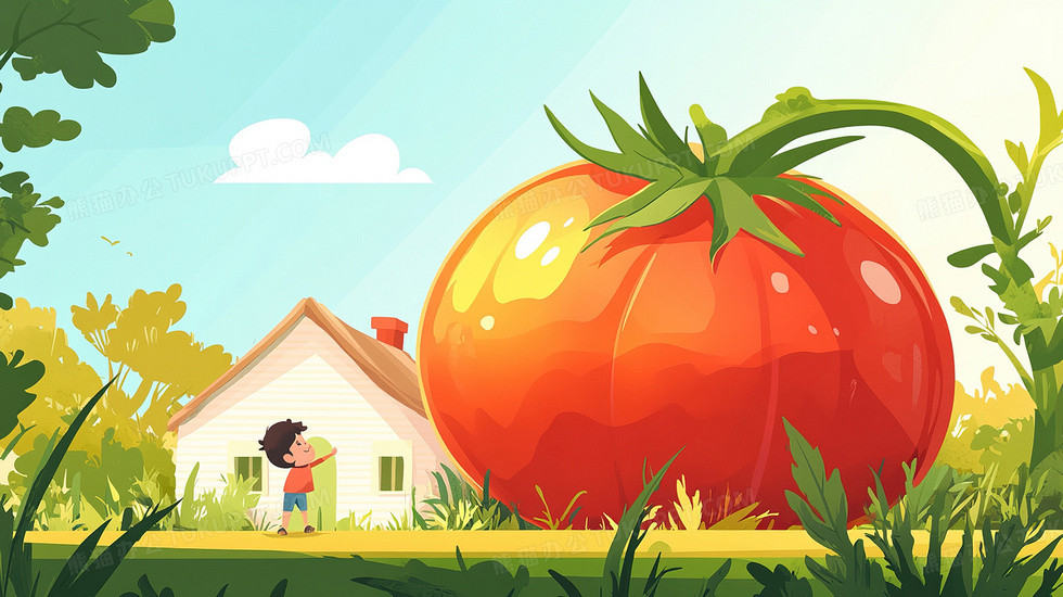 本作品内容为一个巨大番茄创意插画, 格式为 jpg, 大小3 MB, 图片尺寸为2912 x 1632, 源文件无水印, 欢迎使用熊猫办公。 如认为平台内容涉嫌侵权,可通过邮件:tousu@tukuppt.com提出书面通知,我们将及时处理。