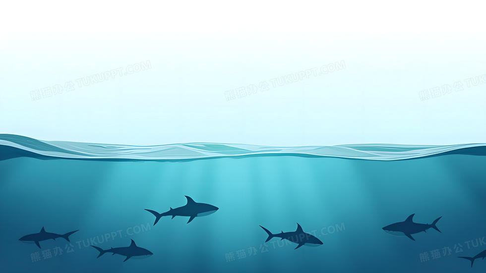 本作品内容为海洋中的鲨鱼群生物背景, 格式为 jpg, 大小3 MB, 图片尺寸为3072 x 1728, 作品中背景图片无需修改, 源文件无水印,可以直接使用, 欢迎使用熊猫办公。 如认为平台内容涉嫌侵权,可通过邮件:tousu@tukuppt.com提出书面通知,我们将及时处理。