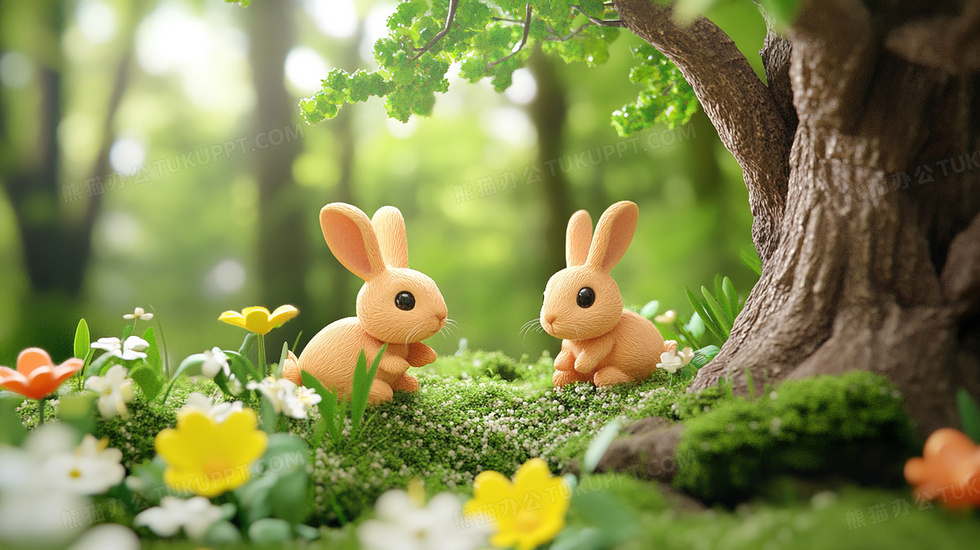 本作品内容为3D立体风格春天森林里的可爱兔子插画, 格式为 jpg, 大小3 MB, 图片尺寸为2912 x 1632, 源文件无水印, 欢迎使用熊猫办公。 如认为平台内容涉嫌侵权,可通过邮件:tousu@tukuppt.com提出书面通知,我们将及时处理。
