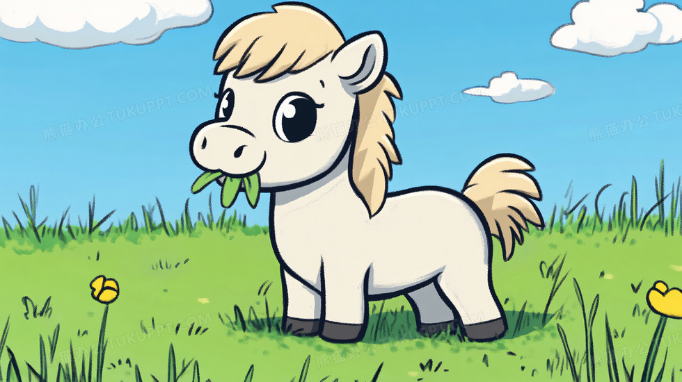 本作品内容为卡通简笔画动物小马插画, 格式为 jpg, 大小5 MB, 图片尺寸为2912 x 1632, 源文件无水印, 欢迎使用熊猫办公。 如认为平台内容涉嫌侵权,可通过邮件:tousu@tukuppt.com提出书面通知,我们将及时处理。
