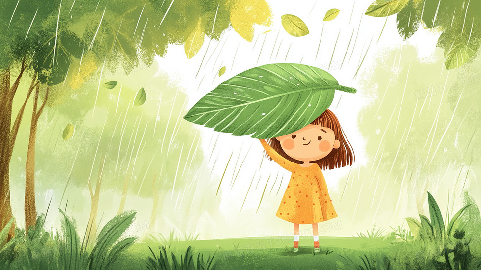 本作品内容为女孩草地树叶春天下雨风景插画, 格式为 jpg, 大小3 MB, 图片尺寸为2912 x 1632, 源文件无水印, 欢迎使用熊猫办公。 如认为平台内容涉嫌侵权,可通过邮件:tousu@tukuppt.com提出书面通知,我们将及时处理。
