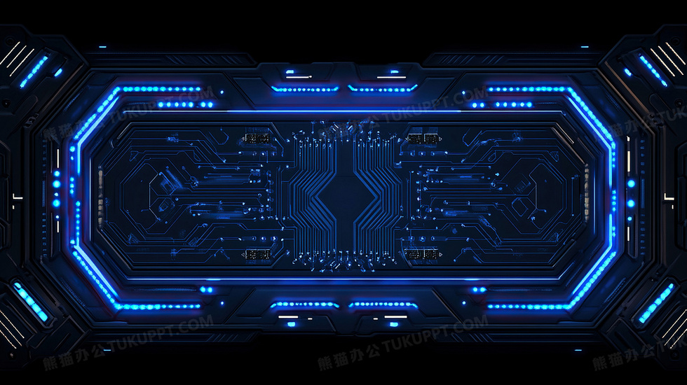 本作品内容为蓝色人工智能科技边框背景, 格式为 jpg, 大小3 MB, 图片尺寸为2912 x 1632, 作品中背景图片无需修改, 源文件无水印,可以直接使用, 欢迎使用熊猫办公。 如认为平台内容涉嫌侵权,可通过邮件:tousu@tukuppt.com提出书面通知,我们将及时处理。