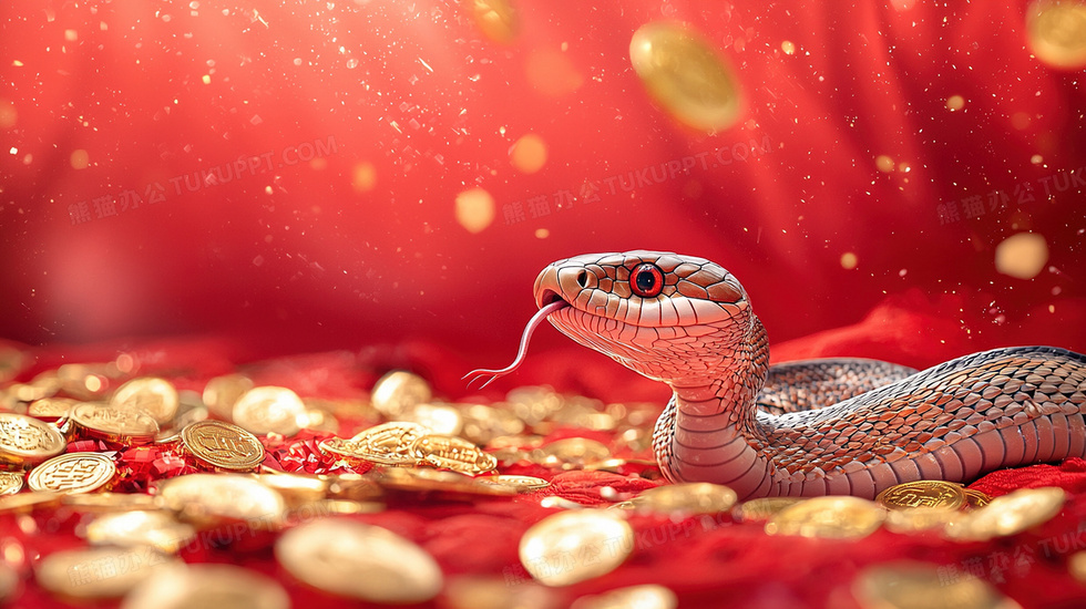 本作品内容为蛇年金币与蛇卡通背景, 格式为 jpg, 大小3 MB, 图片尺寸为2912 x 1632, 作品中背景图片无需修改, 源文件无水印,可以直接使用, 欢迎使用熊猫办公。 如认为平台内容涉嫌侵权,可通过邮件:tousu@tukuppt.com提出书面通知,我们将及时处理。
