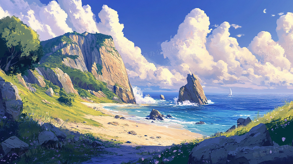 本作品内容为海洋岛礁自然风景插画, 格式为 jpg, 大小4 MB, 图片尺寸为2912 x 1632, 源文件无水印, 欢迎使用熊猫办公。 如认为平台内容涉嫌侵权,可通过邮件:tousu@tukuppt.com提出书面通知,我们将及时处理。