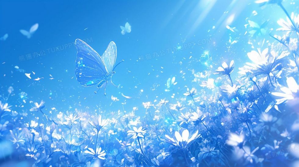本作品内容为蓝色的蝴蝶在花丛间飞舞插画, 格式为 jpg, 大小1 MB, 图片尺寸为2285 x 1281, 源文件无水印, 欢迎使用熊猫办公。 如认为平台内容涉嫌侵权,可通过邮件:tousu@tukuppt.com提出书面通知,我们将及时处理。