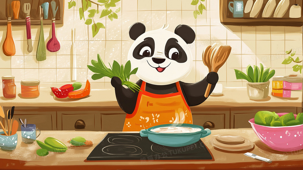 本作品内容为厨房里做菜的可爱卡通熊猫厨师插画, 格式为 jpg, 大小3 MB, 图片尺寸为2912 x 1632, 源文件无水印, 欢迎使用熊猫办公。 如认为平台内容涉嫌侵权,可通过邮件:tousu@tukuppt.com提出书面通知,我们将及时处理。