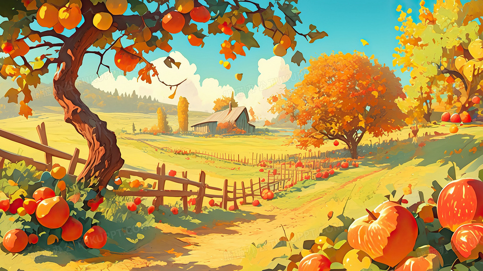 本作品内容为卡通风果园丰收插画, 格式为 jpg, 大小4 MB, 图片尺寸为2912 x 1632, 源文件无水印, 欢迎使用熊猫办公。 如认为平台内容涉嫌侵权,可通过邮件:tousu@tukuppt.com提出书面通知,我们将及时处理。