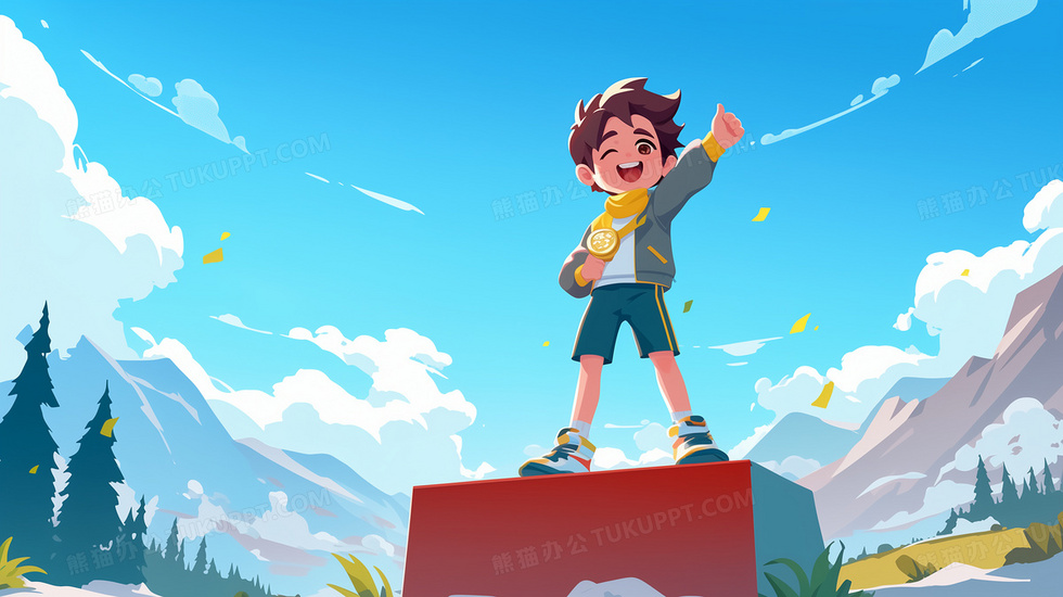 本作品内容为男生手举金牌站在领奖台上为自己欢呼插画, 格式为 jpg, 大小4 MB, 图片尺寸为2912 x 1632, 源文件无水印, 欢迎使用熊猫办公。 如认为平台内容涉嫌侵权,可通过邮件:tousu@tukuppt.com提出书面通知,我们将及时处理。