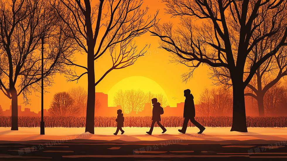 本作品内容为剪影风日出日落城市街道走路的人插画, 格式为 jpg, 大小5 MB, 图片尺寸为2912 x 1632, 源文件无水印, 欢迎使用熊猫办公。 如认为平台内容涉嫌侵权,可通过邮件:tousu@tukuppt.com提出书面通知,我们将及时处理。