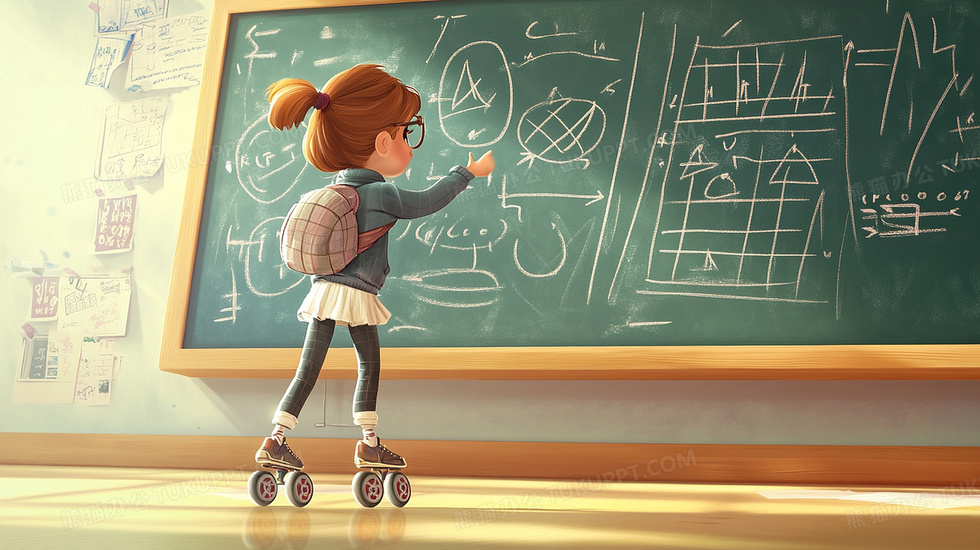 本作品内容为一个学生踩着滑轮黑板前看几何图形卡通插画, 格式为 jpg, 大小3 MB, 图片尺寸为2912 x 1632, 源文件无水印, 欢迎使用熊猫办公。 如认为平台内容涉嫌侵权,可通过邮件:tousu@tukuppt.com提出书面通知,我们将及时处理。