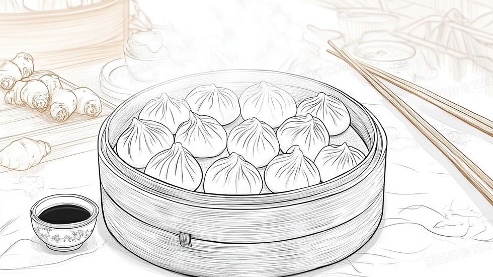 本作品内容为小笼包单色白描插画, 格式为 jpg, 大小3 MB, 图片尺寸为2912 x 1632, 源文件无水印, 欢迎使用熊猫办公。 如认为平台内容涉嫌侵权,可通过邮件:tousu@tukuppt.com提出书面通知,我们将及时处理。