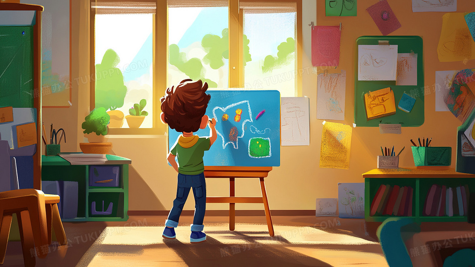 本作品内容为课外辅导班兴趣班学习绘画的卡通男孩插画, 格式为 jpg, 大小3 MB, 图片尺寸为2912 x 1632, 源文件无水印, 欢迎使用熊猫办公。 如认为平台内容涉嫌侵权,可通过邮件:tousu@tukuppt.com提出书面通知,我们将及时处理。