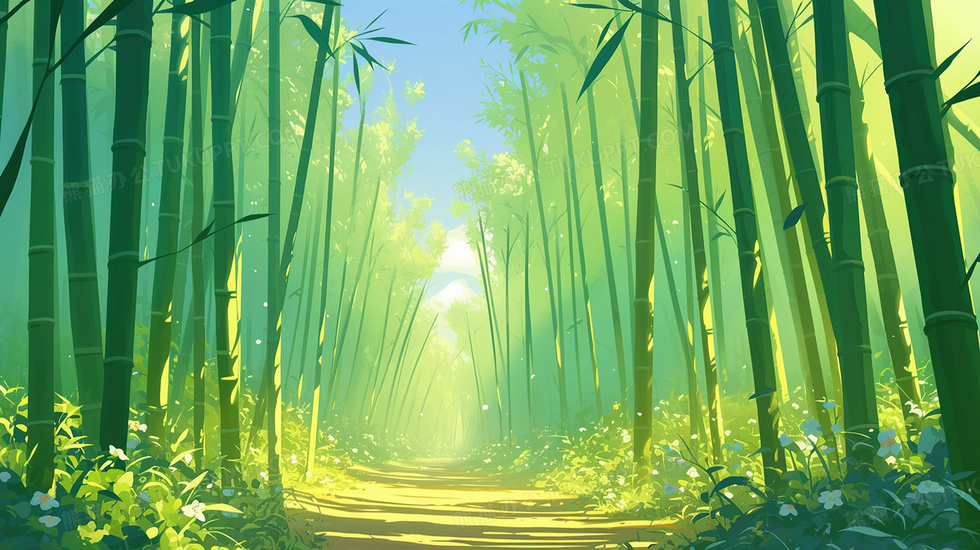 本作品内容为唯美春天翠绿竹林风景插画, 格式为 jpg, 大小3 MB, 图片尺寸为2912 x 1632, 源文件无水印, 欢迎使用熊猫办公。 如认为平台内容涉嫌侵权,可通过邮件:tousu@tukuppt.com提出书面通知,我们将及时处理。