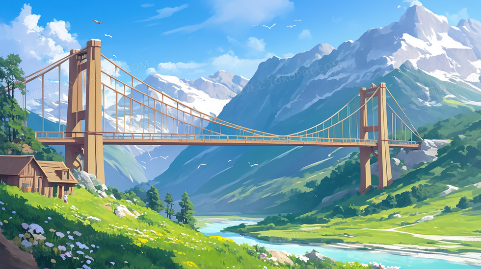 本作品内容为蔚蓝天空河流桥梁建筑插画, 格式为 jpg, 大小3 MB, 图片尺寸为2912 x 1632, 源文件无水印, 欢迎使用熊猫办公。 如认为平台内容涉嫌侵权,可通过邮件:tousu@tukuppt.com提出书面通知,我们将及时处理。