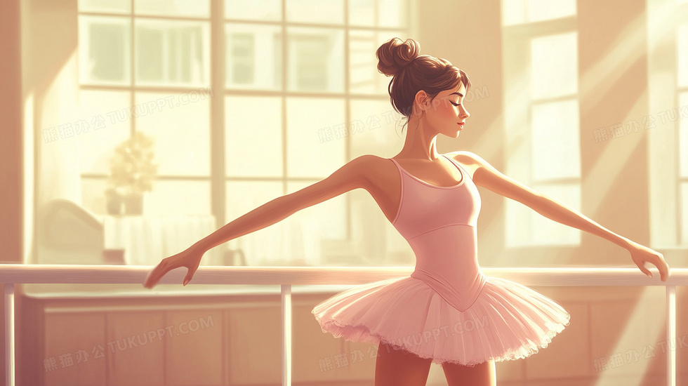 本作品内容为舞蹈室跳芭蕾舞的女孩卡通插画, 格式为 jpg, 大小2 MB, 图片尺寸为2912 x 1632, 源文件无水印, 欢迎使用熊猫办公。 如认为平台内容涉嫌侵权,可通过邮件:tousu@tukuppt.com提出书面通知,我们将及时处理。