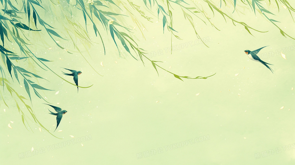本作品内容为柳树边飞翔的燕子卡通背景, 格式为 jpg, 大小3 MB, 图片尺寸为2912 x 1632, 作品中背景图片无需修改, 源文件无水印,可以直接使用, 欢迎使用熊猫办公。 如认为平台内容涉嫌侵权,可通过邮件:tousu@tukuppt.com提出书面通知,我们将及时处理。