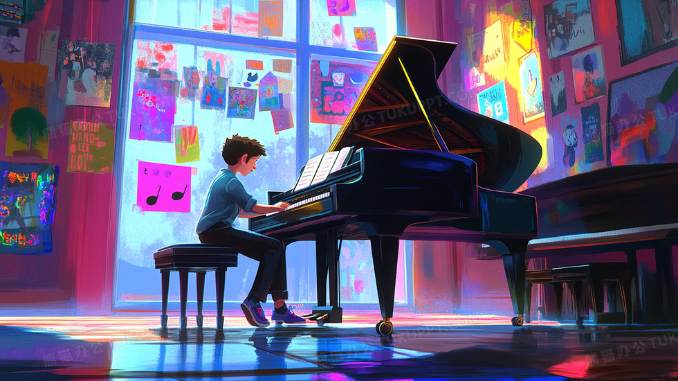 本作品内容为客厅里弹钢琴的学生卡通插画, 格式为 jpg, 大小4 MB, 图片尺寸为2912 x 1632, 源文件无水印, 欢迎使用熊猫办公。 如认为平台内容涉嫌侵权,可通过邮件:tousu@tukuppt.com提出书面通知,我们将及时处理。
