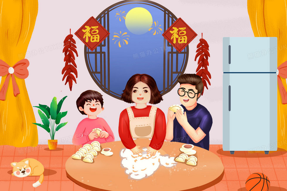 本作品内容为新年一家人在一起包饺子插画, 格式为 psd, 大小40 MB, 请使用软件PhotoShop(CS6)打开, 源文件无水印, 欢迎使用熊猫办公。 如认为平台内容涉嫌侵权,可通过邮件:tousu@tukuppt.com提出书面通知,我们将及时处理。