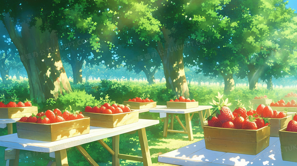 本作品内容为桌上的新鲜草莓果篮绿树插画, 格式为 jpg, 大小3 MB, 图片尺寸为2912 x 1632, 源文件无水印, 欢迎使用熊猫办公。 如认为平台内容涉嫌侵权,可通过邮件:tousu@tukuppt.com提出书面通知,我们将及时处理。