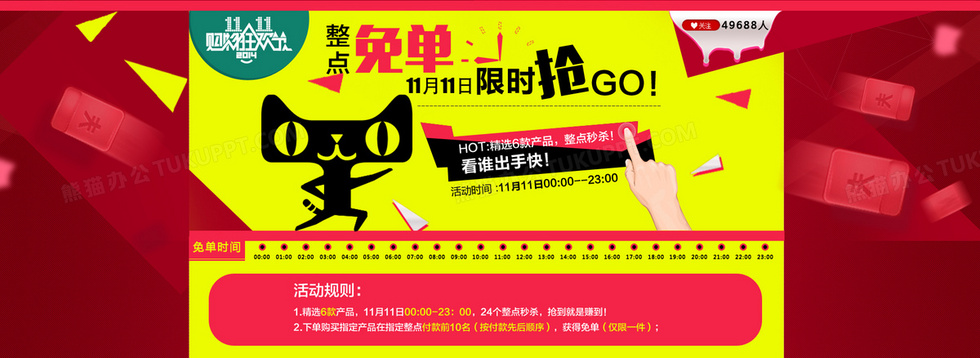 本作品内容为双十一活动图, 格式为 psd, 图片尺寸为1920 x 700, 作品中背景图片无需修改, 源文件无水印,可以直接使用, 欢迎使用熊猫办公。 如认为平台内容涉嫌侵权,可通过邮件:tousu@tukuppt.com提出书面通知,我们将及时处理。