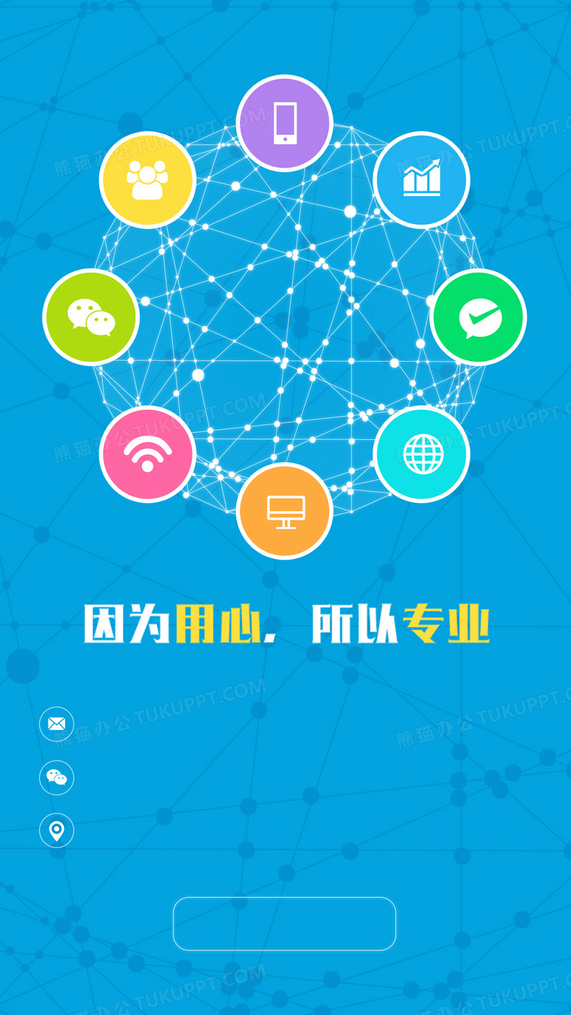 本作品内容为网络科技公司联系我们H5免费下载, 格式为 psd, 图片尺寸为1080 x 1920, 作品中背景图片无需修改, 源文件无水印,可以直接使用, 欢迎使用熊猫办公。 如认为平台内容涉嫌侵权,可通过邮件:tousu@tukuppt.com提出书面通知,我们将及时处理。