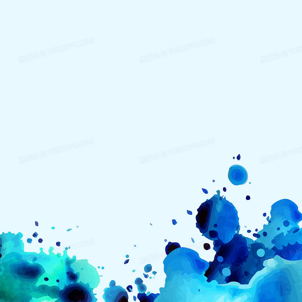本作品内容为蓝色矢量水彩泼墨墨迹背景, 格式为 ai, 图片尺寸为5340 x 5340, 作品中背景图片无需修改, 源文件无水印,可以直接使用, 欢迎使用熊猫办公。 如认为平台内容涉嫌侵权,可通过邮件:tousu@tukuppt.com提出书面通知,我们将及时处理。