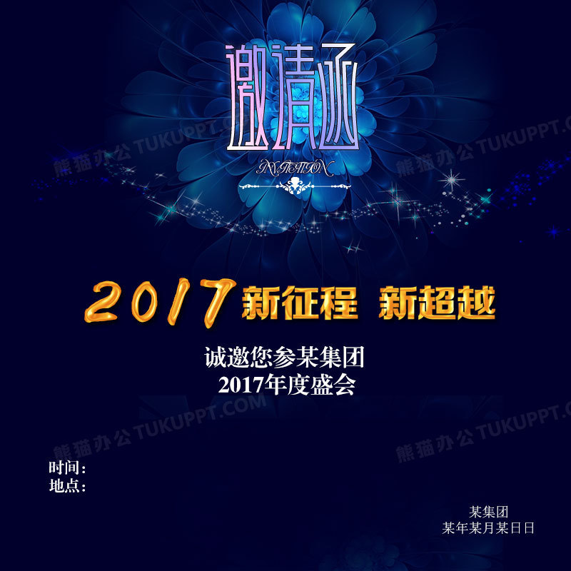 本作品内容为深蓝色年会邀请函背景, 格式为 psd, 图片尺寸为800 x 800, 作品中背景图片无需修改, 源文件无水印,可以直接使用, 欢迎使用熊猫办公。 如认为平台内容涉嫌侵权,可通过邮件:tousu@tukuppt.com提出书面通知,我们将及时处理。