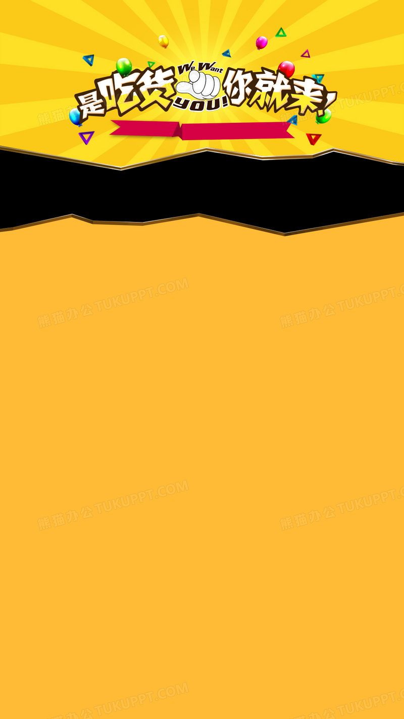 本作品内容为是吃货你就来促销狂欢PSD分层H5背景素, 格式为 psd, 图片尺寸为1080 x 1920, 作品中背景图片无需修改, 源文件无水印,可以直接使用, 欢迎使用熊猫办公。 如认为平台内容涉嫌侵权,可通过邮件:tousu@tukuppt.com提出书面通知,我们将及时处理。