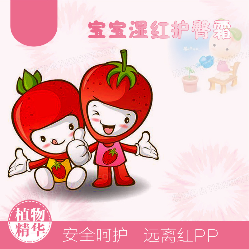 本作品内容为宝宝护肤品草莓卡通主图, 格式为 psd, 图片尺寸为800 x 800, 作品中背景图片无需修改, 源文件无水印,可以直接使用, 欢迎使用熊猫办公。 如认为平台内容涉嫌侵权,可通过邮件:tousu@tukuppt.com提出书面通知,我们将及时处理。