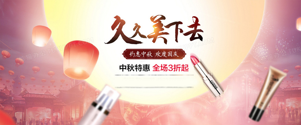 本作品内容为中秋化妆品背景banner装饰, 格式为 jpg, 图片尺寸为1920 x 800, 作品中背景图片无需修改, 源文件无水印,可以直接使用, 欢迎使用熊猫办公。 如认为平台内容涉嫌侵权,可通过邮件:tousu@tukuppt.com提出书面通知,我们将及时处理。