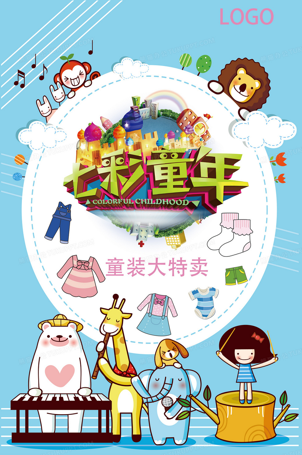 本作品内容为七彩童年童装促销海报背景素材, 格式为 psd, 图片尺寸为3543 x 5334, 作品中背景图片无需修改, 源文件无水印,可以直接使用, 欢迎使用熊猫办公。 如认为平台内容涉嫌侵权,可通过邮件:tousu@tukuppt.com提出书面通知,我们将及时处理。